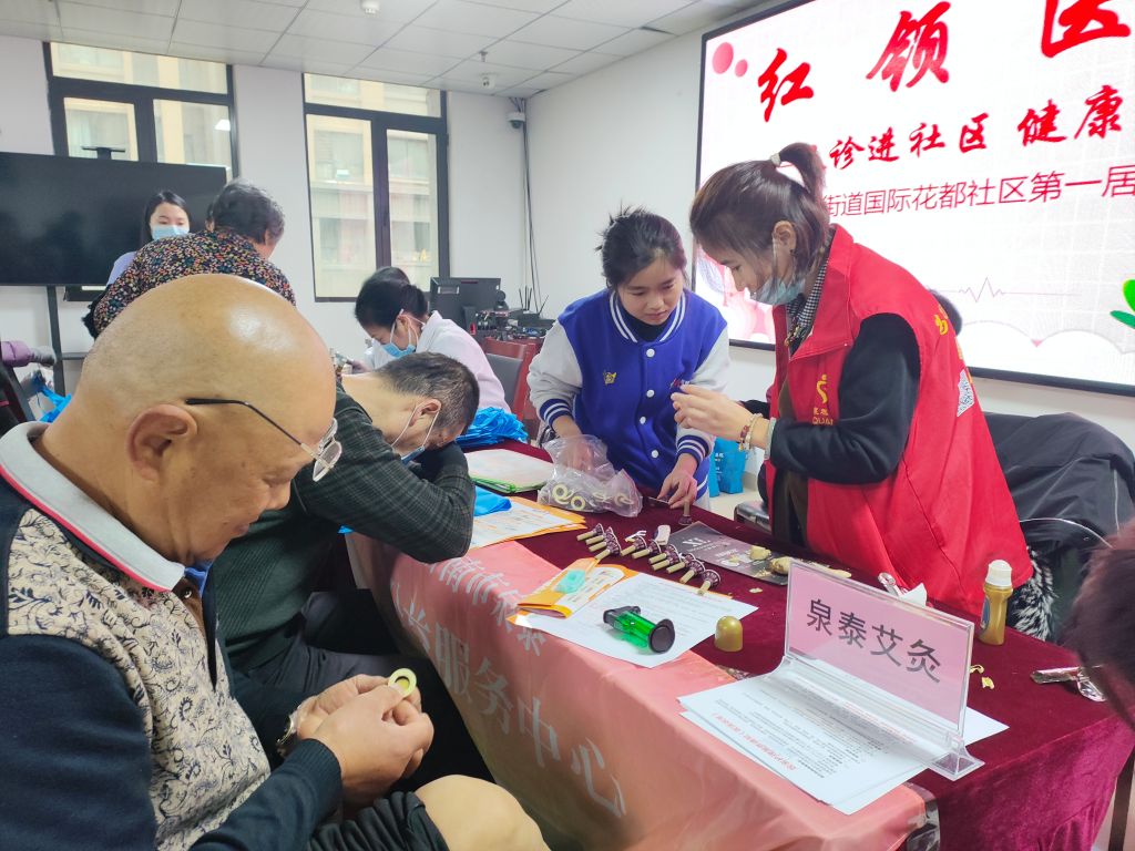 社工站与国际花都第一社区联合协调场地、人力资源,通过与山东中医院大学第二附属医院、济南耳鼻喉医院、泉泰艾灸等多家医疗机构合作,为居民提供两腺检查、耳鼻喉检查、中医耳穴保健调理等专业的身体检查和护理服务,并为居民提供疾病预防、饮食、就医等方面的专业指导,让居民在家门口享受到专业的医疗服务。