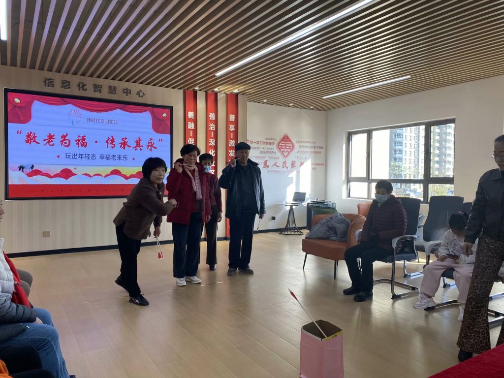 一大早,东城名郡活动室里就热闹了起来。老寿星们围坐在一起聊家常、忆往昔。生日会上,社工准备了游戏互动环节,趣味投壶、夹绿豆等活动,老年人们积极性很高,活跃了现场气氛。有趣的互动游戏促进了长者之间的沟通和交流,让长者动起脑力,唤醒年轻时代的记忆。最后来到活动的主题环节——吃生日蛋糕,伴随着“最美不过夕阳红,温馨又从容……”的音乐,活动开始了,老人们相互传递着祝福,脸上都洋溢着幸福的笑容。社工带领老人们一起唱生日歌,一起吹生日蜡烛,一起做游戏,一起过生日,和谐愉快的气氛感染着在场的每个人,整个现场其乐融融、十分温馨。