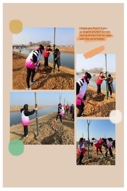 活动现场,忙碌有序。志愿者们、热心居民互相帮助,团结合作,有的小心翼翼地扶直苗木,有的挥锹铲土,有的细心培土育苗,还有的浇水定根,将一棵棵充满生机和希望的树苗植入地里,同时也植下了绿色的希望,并为小树苗浇灌春天的甘泉。在大家齐心协力的努力下,一排排整齐的树苗迎风摇曳,展现出勃勃生机。