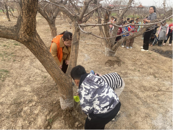 步入千亩杏花园,扑面而来的是商河特有的农耕文化气息。农艺师王大叔手持特制的木柄修枝剪,边示范边讲解杏树扎根于黄河故道沙壤土、汲取温泉水生长的独特生态,以及"张六真"品牌金杏作为鲁北最大种植基地地理标志的培育历程。通过为杏树浇水、观察年轮测树龄等互动环节,使孩子们感受到劳动创造的喜悦,树立了爱护自然、珍惜粮食的生态理念,近距离领悟到农耕文化的深厚底蕴。