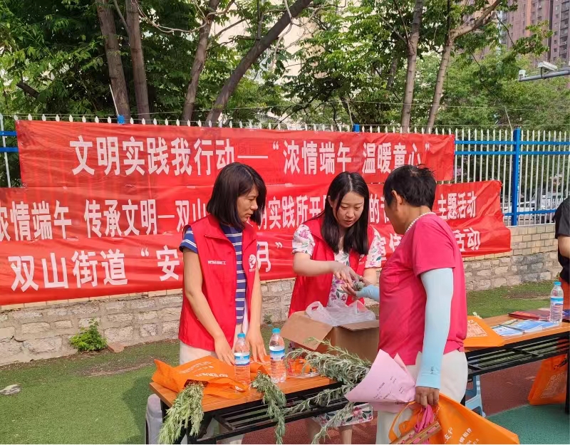 端午节,又称端阳节,是中华民族传统节日之一。为了弘扬传统文化,增进社区居民间的相互了解和交流,丰富社区居民的业余文化生活,2024年6月6日,双山街道社工站联合双山街道办事处、新世纪社区、日照银行等开展端午传统文化、移风易俗宣传活动。