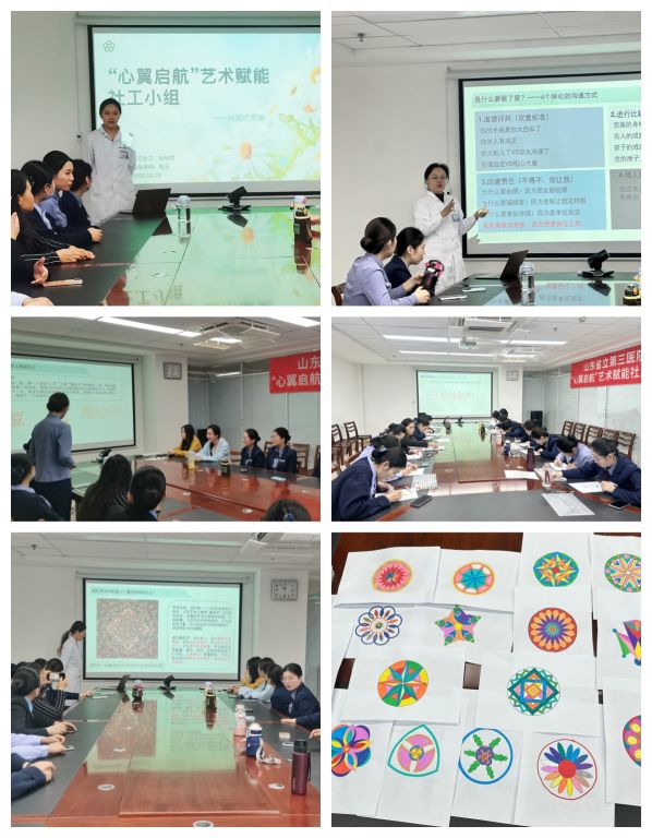 3月28日中午,“三沐阳光”医务社工服务队联合门诊部开展了第三次“心翼启航”艺术赋能社工小组活动,此次活动主题为“沟通艺术+情绪曼陀罗”绘画疗愈活动,通过提升沟通技巧和艺术赋能帮助医辅人员释放压力、提升心理健康。