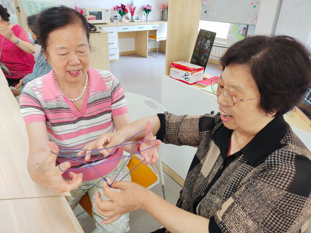 穿越时光之旅,重返美好童年。活动伊始,社工首先带领服务对象进行热身游戏,轻松愉快的氛围迅速在活动室弥漫开来,随着游戏的进行,服务对象也逐渐投入到这场特殊的儿童节庆祝活动当中。紧接着,社工邀请服务对象分享自己童年记忆里的儿童节,服务对象们纷纷打开了话匣子,讲述着儿时的趣事和欢乐,服务对象孙阿姨回忆起小时候和小伙伴们一起捉迷藏、跳皮筋的场景,仿佛又回到了那个无忧无虑的时光。在分享环节之后,社工又带领服务对象重温了童年时的经典游戏—丢沙包、滚铁环、翻花绳等游戏,仿佛让服务对象又回到了童年时光,服务对象兴奋地参与其中,重拾儿时的乐趣。