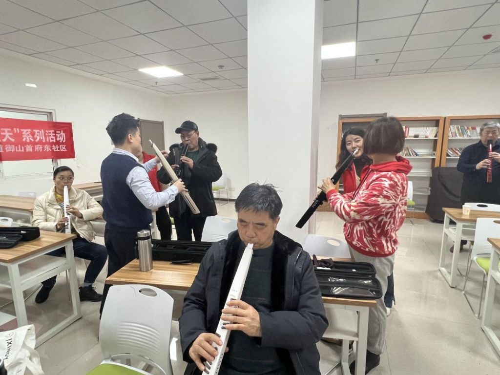 为丰富社区居民精神文化生活,满足社区居民对音乐文化的需求,提升音乐素养,陶冶情操,增进邻里交流,3月11日,华山街道社工站联合御山首府东社区共同开展“吹响幸福 乐享生活”老年电吹管公益课堂活动。