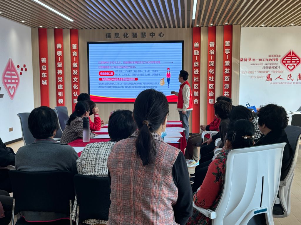 活动当天,志愿者齐聚一堂。社工首先为组员详细介绍了社工站的职能与服务内容。社工站作为社区服务的重要一环,致力于为居民以及弱势群体提供各类帮助与支持,同时也是志愿者们发挥力量、实现价值的平台。接着,社工结合社区实际,针对志愿服务的各个方面进行了深入浅出的讲解。与志愿者围绕“什么是志愿服务”“志愿者可以做什么”“需要注意什么”等方面展开讨论和分享,志愿者提出“可以跟独居和空巢的老人唠唠家常;有理发技能的志愿者可以帮老人剪剪头发;多多走访困难家庭,了解他们的难处,做点力所能及的事……”志愿者纷纷踊跃发言,现场气氛十分活跃。