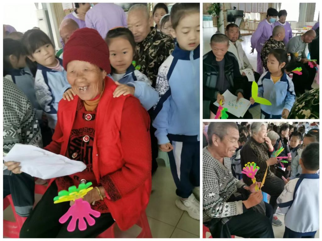 活动最后,社工引导小朋友们把自己亲手制作的贺卡和绘画送给了爷爷奶奶,给爷爷奶奶捶捶背、揉揉腿,在爷爷奶奶身边嘘寒问暖,一张张可爱的笑脸,一声声稚嫩的问好,让爷爷奶奶笑得合不拢嘴,使老人们感受到了儿孙绕膝的温馨。