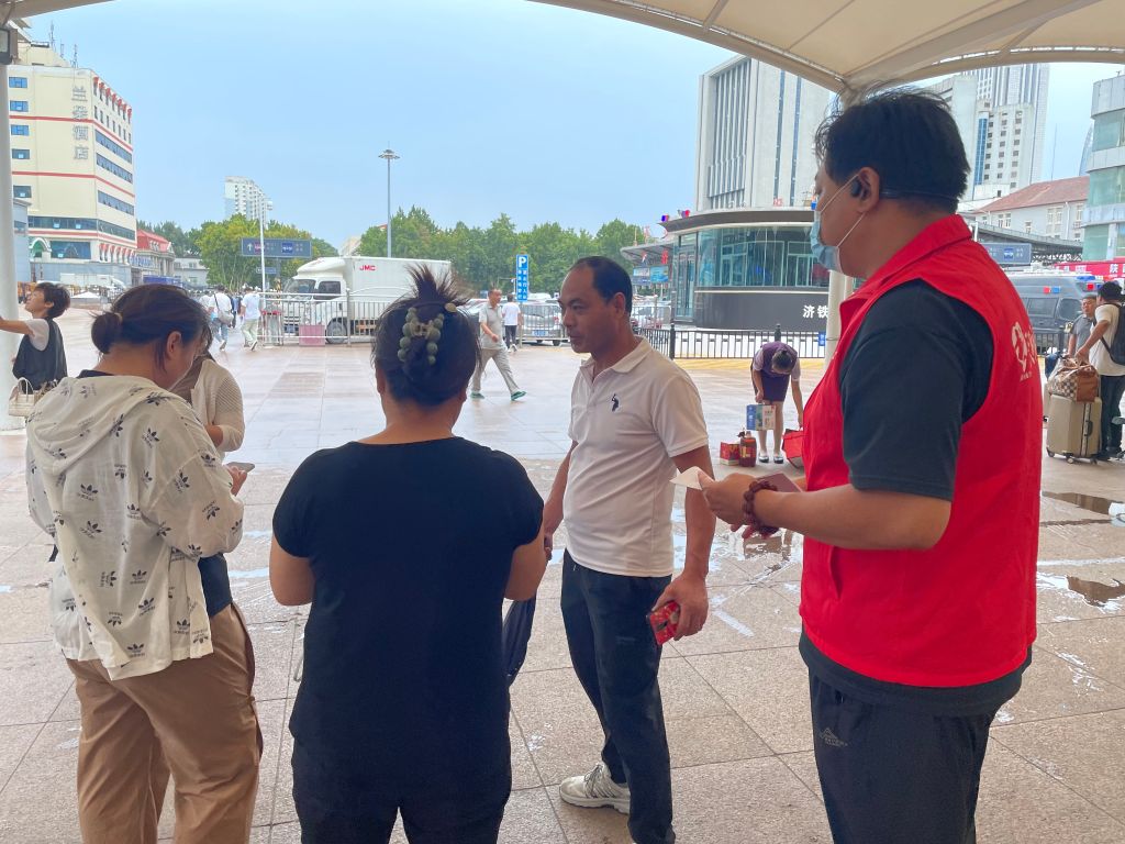 一声声热情的问候,一道道穿梭的身影,在济南火车站的进站广场,汇织出了一张充满温情的画面。