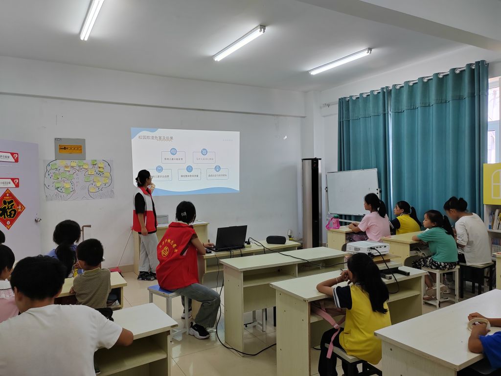 第二节小组活动围绕着防霸凌教育主题进行,针对未成年人的年龄特点、心理特征等以通俗易懂的语言向孩子们讲解了“霸凌”的相关内容,并告知孩子们在生活中如遇到校园、家庭、网络暴力方面的问题,要及时求助,懂得自我保护,在必要时可以寻求法律以及司法机关的保护。