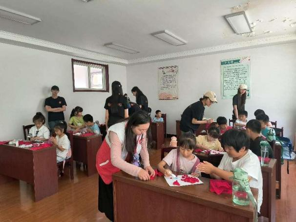 在活动中,志愿者们还组织孩子们共同唱响了《我们是共产主义接班人》这首激昂奋进的红色歌曲,嘹亮的歌声在现场回荡,不仅激发了孩子们的爱国热情,更将活动氛围推向了高潮。