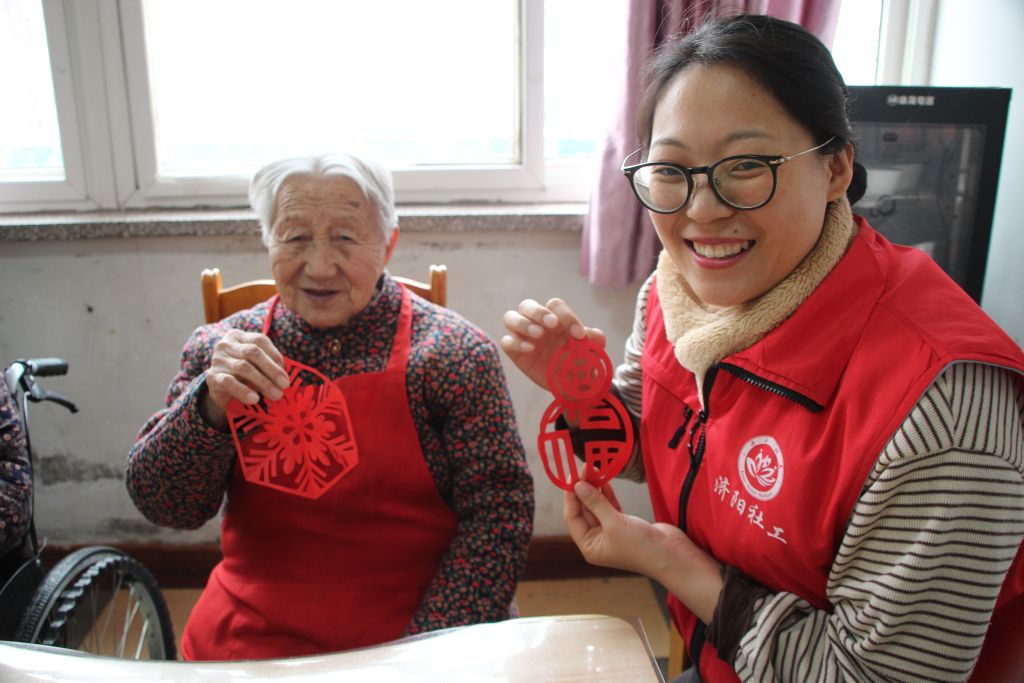 为了丰富老年人日益增长的精神文化需要,满足老有所乐,老有所学的多元形式,营造欢乐喜庆的节日气氛,近日,济阳街道社工站联合福缘老年公寓一同为因为各种原因无法回家过节的老人们举行了温馨的年味活动——“过腊八,剪窗花,迎新年”主题活动。