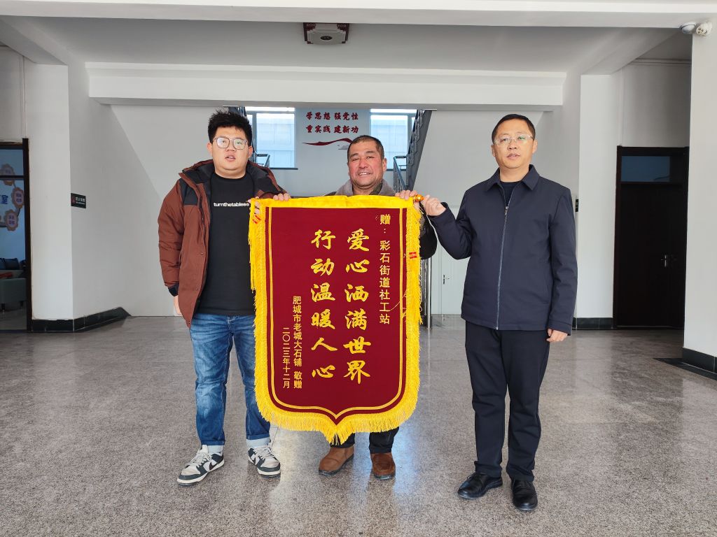 12月20日,因精神分裂和抑郁症导致离家五天的鲁某家人将一面绣有“爱心洒满世界,行动温暖人心”的锦旗送到了彩石街道社工站,感谢社工站不仅救了他家人的生命,还让他重新找回了家庭的温暖。这面锦旗不仅代表了鲁某家属对社工站的感谢,更是对社工站工作的肯定和认可。