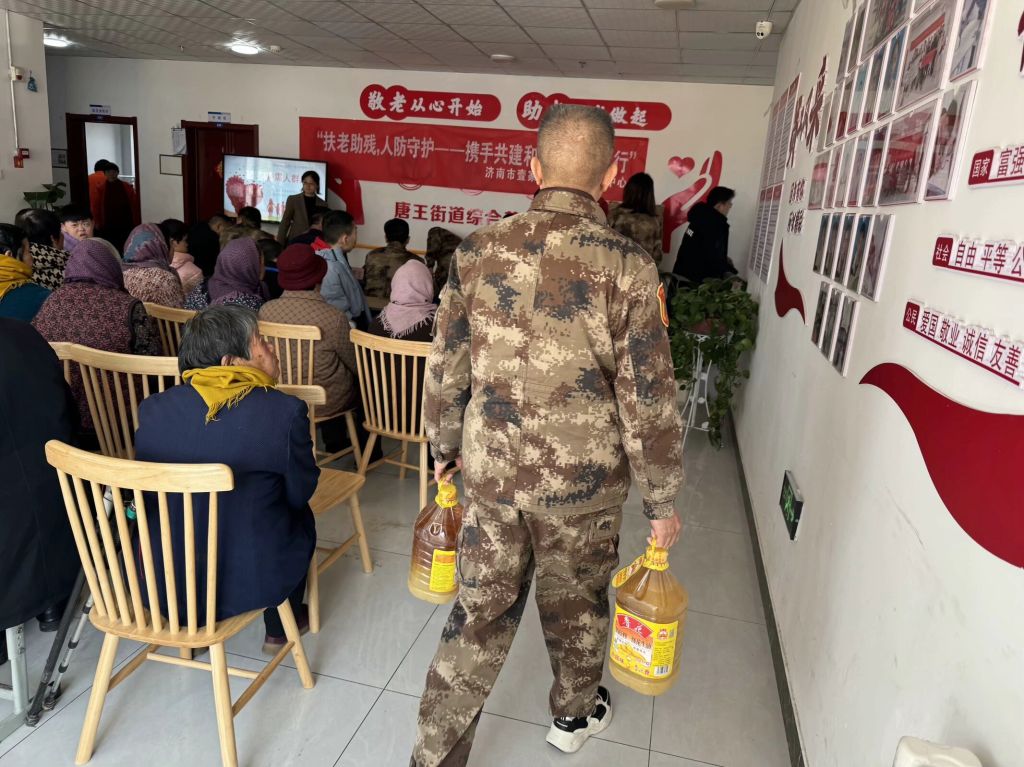 此次活动,养老服务中心及社工站精准匹配老年群体的实际需求,链接到济南市人防应急救援中心,中心工作人员通过捐赠物资、安全防护宣讲的形式为村居老人奉献爱心,以切实行动传递社会温暖,让每一位老人都能感受到社会的关怀与温暖,享受幸福的晚年生活。