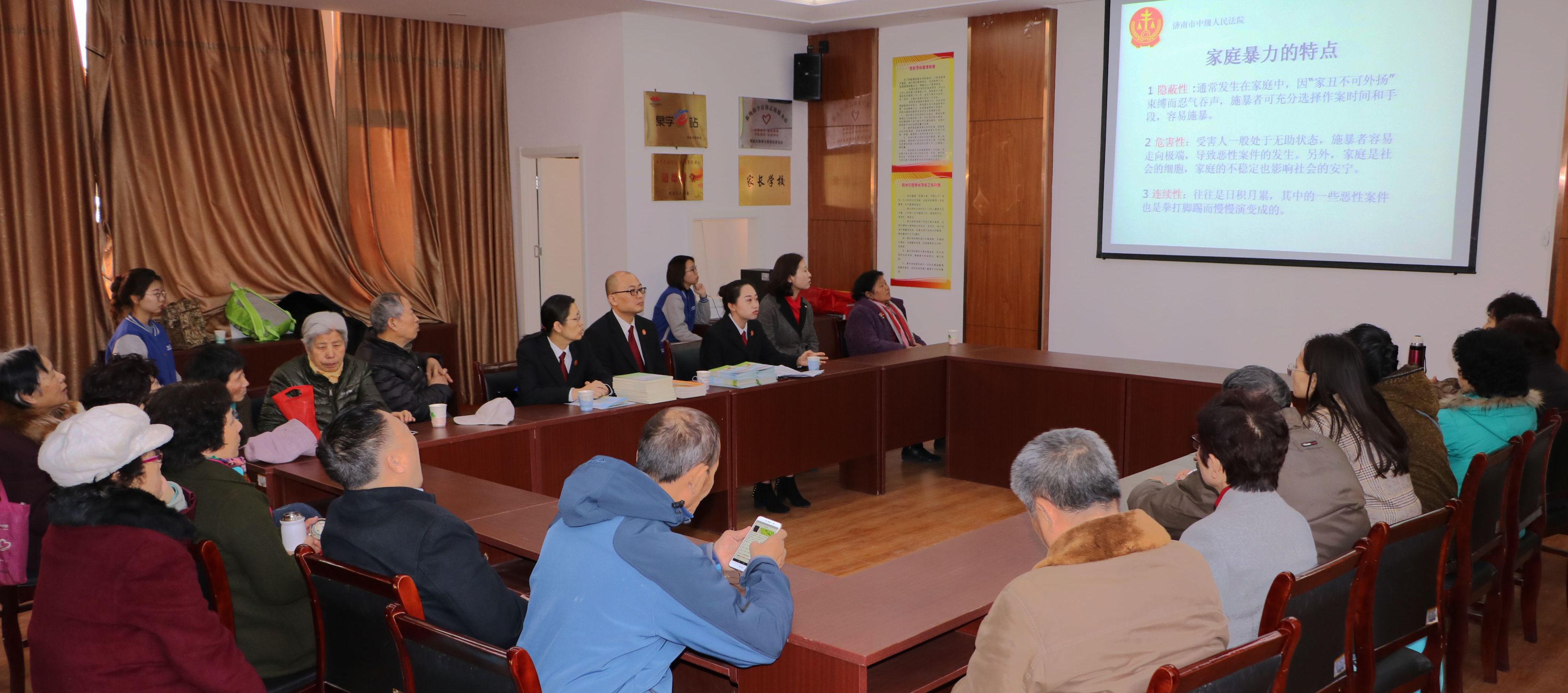 2019年3月6日新映象项目组联合社区居委会邀请济南市中级人民法院工作人员开展关于婚姻家庭财产纠纷的法律讲座,并对居民的法律问题进行答疑解惑。济南市中级人民法院韩庭长一行三人出席此次活动。