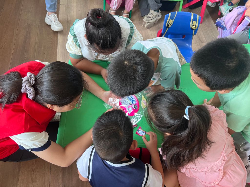 首先,社工利用视频、图片、课件等多媒体资源,主要围绕“这些食物能吃吗?”“如何辨别食物好坏?”以及“健康饮食好习惯”三个内容进行宣传教育,让小朋友了解辨别食物好坏的方法,懂得养成健康饮食的好习惯。随后发放小饼干及糖果教小朋友们认识生产日期、保质期,并能很快找到食品外包装盒上的生产日期。通过寓教于乐的游戏方式,让幼儿在轻松愉快的氛围中学习。