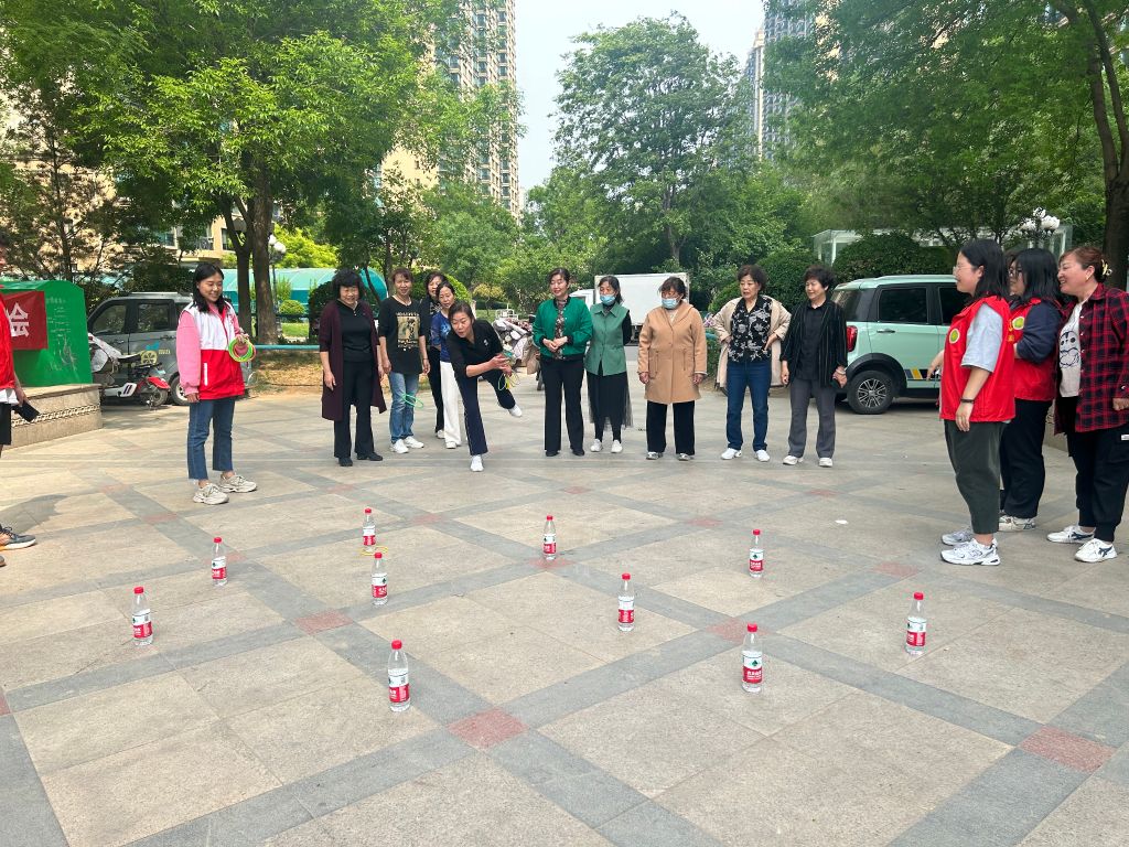 社工经多次需求调研、与社区沟通后设置此次活动的比赛项目,为保证活动顺利开展,特链接山东交通学院青葵志愿服务队为此次活动注入活力。活动内容丰富、形式多样,包括托球跑、踢毽子、两人三足、趣味套圈等项目。