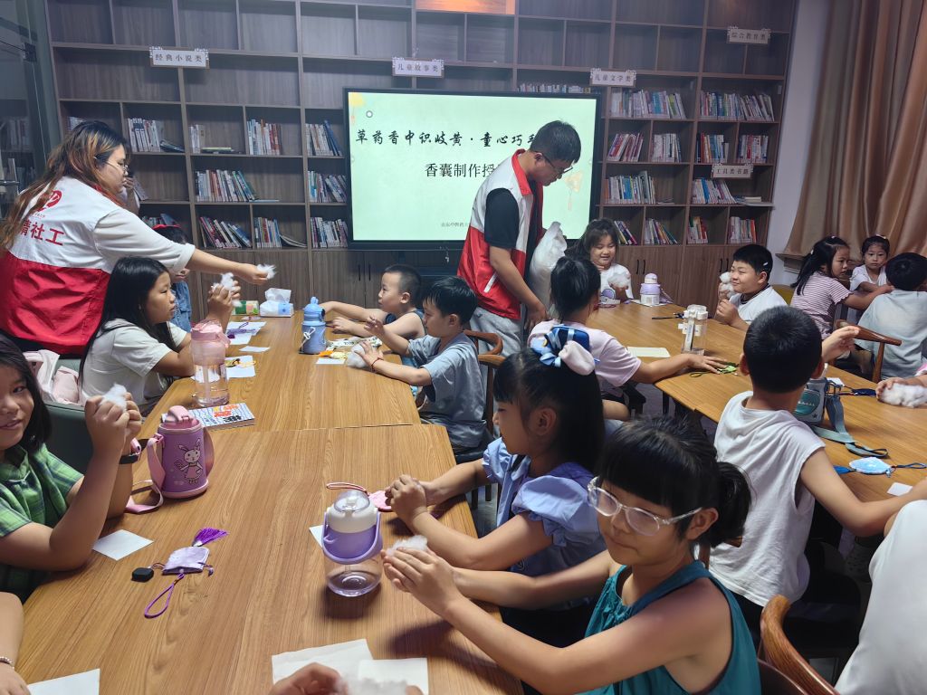 “香”约传统,“药”你健康——文昌街道社工站开展儿童中医药文化科普与香囊制作活动