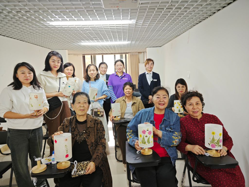 活动开始后,社工首先向参与者详细介绍了本次活动的目的和内容,然后由服务对象进行自我介绍,增进彼此的了解和认识,并进行破冰游戏,拉近服务对象之间的距离,营造轻松愉悦的活动氛围。随后,社工向服务对象展示压花台灯的制作方法,叮嘱服务对象制作过程的注意事项。在社工的指导下,服务对象分配好花材的布局,在台灯上先摆好想要的样式进行粘贴。粘贴好以后,将保护膜贴好,以保护台灯的美观和延长其使用寿命。经过一番努力,一盏独具匠心的压花台灯便在大家的协作下顺利完成,这不仅是一次手工制作的体验,更是参与者们共同创造美好回忆的过程。