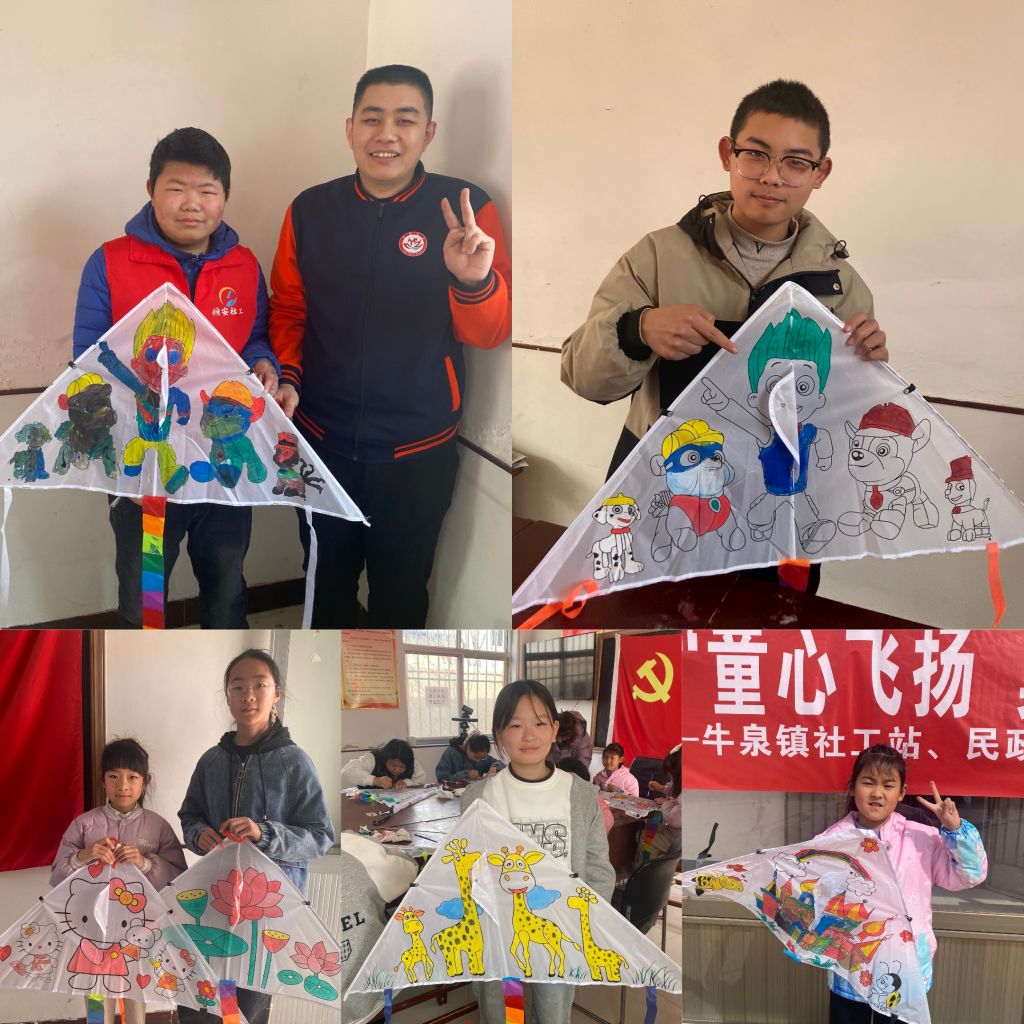 为迎接第十八个世界社会工作日,牛泉镇社工站结合“凝聚社工力量,服务美好生活”主题,同时依托七彩课堂项目中紫色寓意“勇敢”的模块开展相关活动,于3月17日邀请10位青少年在吕小庄村委进行风筝彩绘DIY。