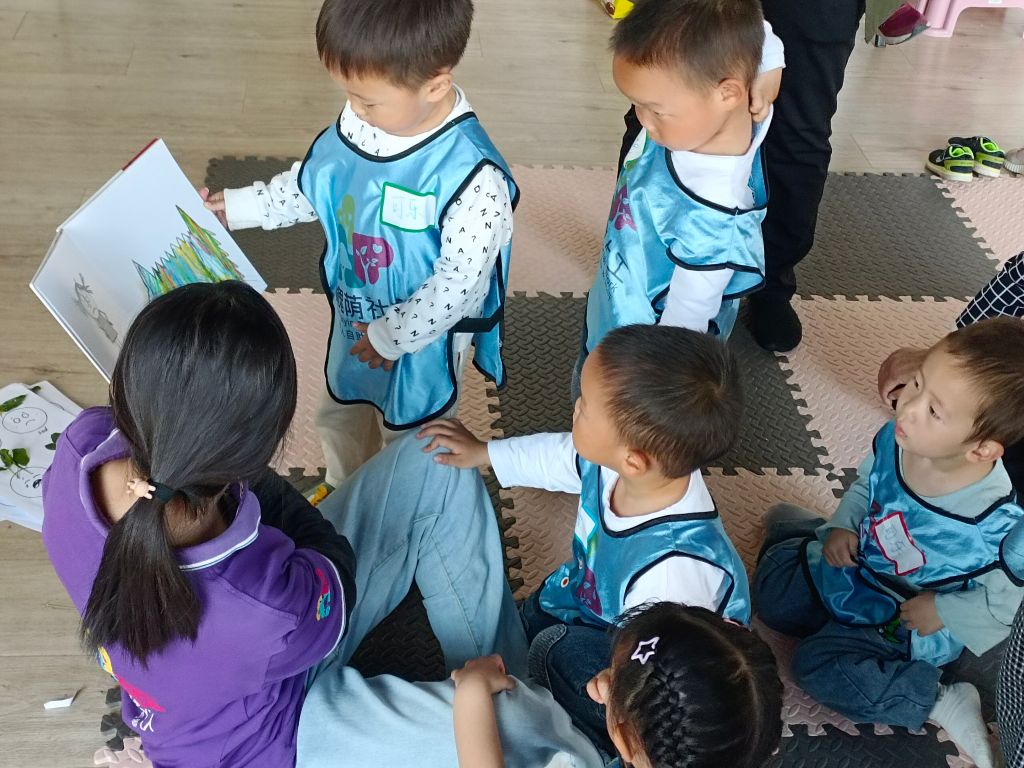 幼儿与社工一同阅读绘本《我的情绪小怪兽》,用可爱的、五颜六色的小怪兽吸引幼儿听小怪兽的故事。在绘本阅读的过程中与社工与幼儿互动,讲绘本故事与幼儿熟悉的事物相结合,帮助孩子理解情绪并引导幼儿学习表达和管理情绪。在绘本共读完成后,幼儿和老人做起了情绪七彩花,用各种颜色的花瓣表达情绪,老人们也在手工制作中放松身心,调节情绪。