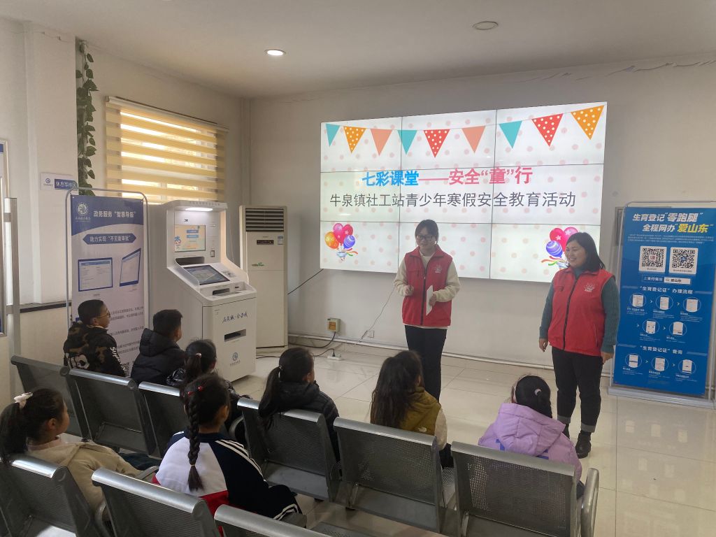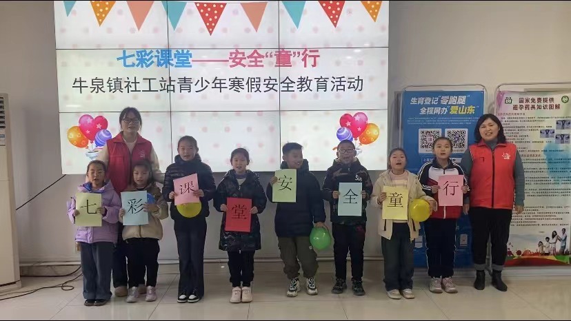 为进一步增强辖区青少年的安全意识和自我防护能力,保障孩子安全、平稳、丰富地度过假期,莱芜区牛泉镇社工站于2024年1月28日在牛泉镇便民服务大厅开展七彩课堂——安全“童”行青少年寒假安全教育活动。