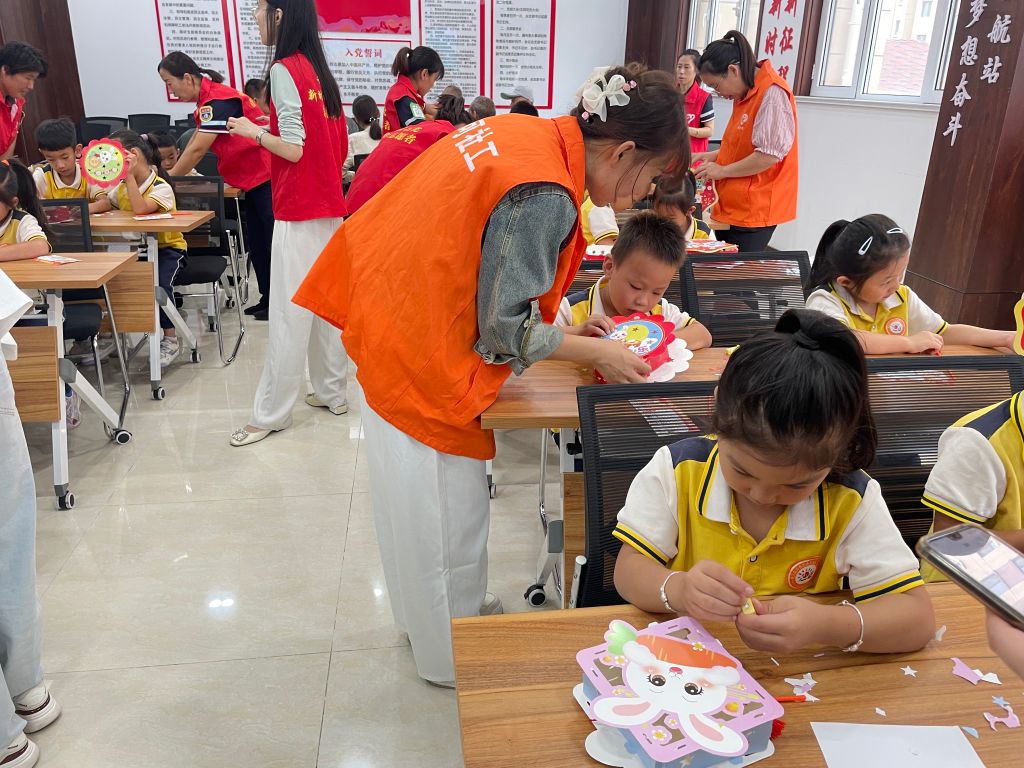 活动开始前,社工小张向孩子们详细介绍了中秋的背景与意义,及制作花灯的技巧和方法,孩子们听得津津有味,跃跃欲试。随后,社工将提前准备好的制作花灯的材料包分发到每个孩子手中,从最开始的抠图到缠绕灯线、再到拼接完成,孩子们齐动手、互帮助,现场热闹非凡,一片温馨。不一会儿,一盏盏古风古韵的花灯就制作完成了,花灯不仅照亮了团圆的夜,更照亮了孩子们心中的那份对传统文化的热爱与传承。