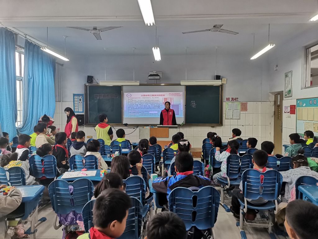 课堂上,社工通过PPT的形式为学生讲述三国英雄人物的事迹,并提问其中一些人物和故事情节,引导学生们积极踊跃回答问题,以生动、贴合的形式,让学生们更好地与英雄人物对话,学习他们的品质。