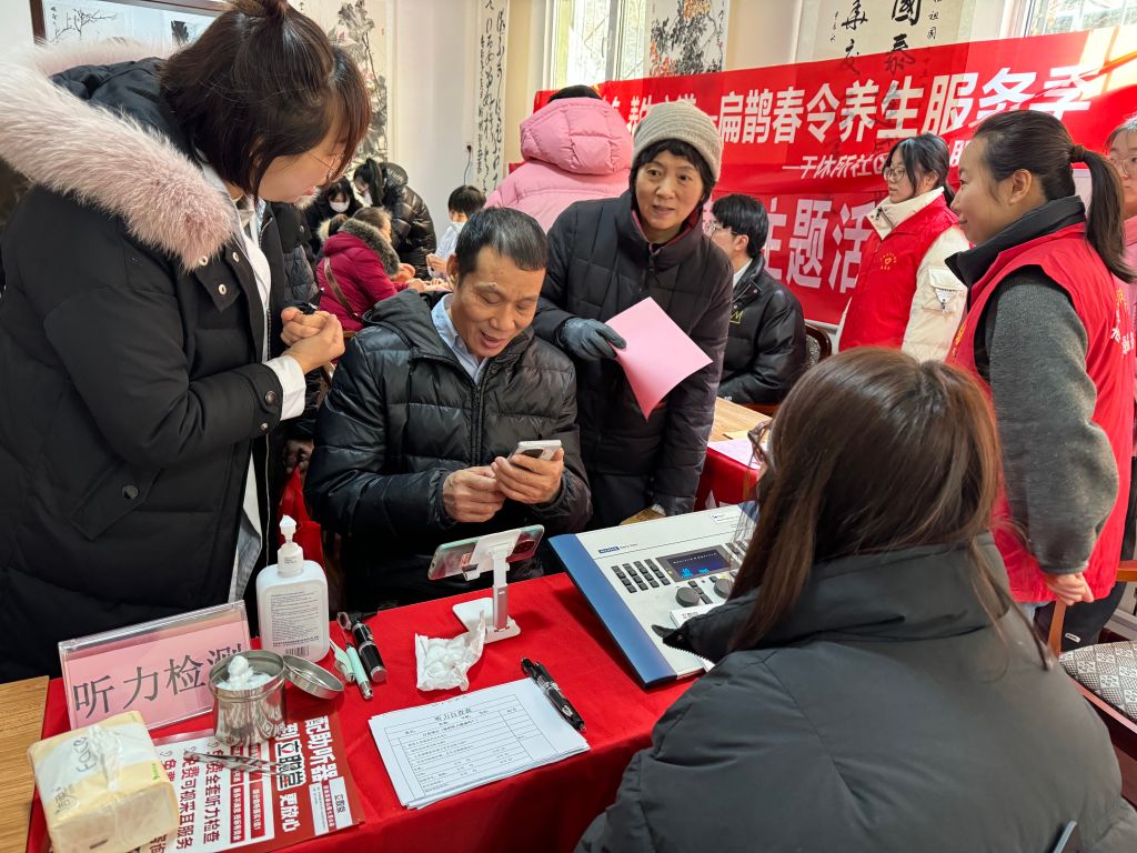 义诊活动中,医生为居民中医号脉,测量血压,检测心肺功能,查看是否有异常呼吸音或心脏杂音等,根据居民的体质给出调理身体的建议。耳科医生给居民进行听力检测以及进行中医传统疗法耳豆压穴治疗。通过中医药的力量,帮助辖区居民提高自身健康水平。
