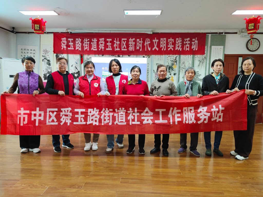 11月7日上午,市中区舜玉路街道社工站携手舜玉社区共同开展了“银龄八段锦,健康伴我行”健康教育小组活动第六节,旨在进一步加深空巢老人的自我健康管理意识,共同打造健康幸福的晚年生活。