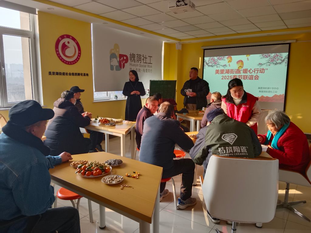 失独家庭是计划生育工作中的一个特殊群体,他们在情感和精神寄托上,面临着一定的空虚感和孤独感,美里湖街道社会工作服务站始终高度重视做好失独家庭的援助工作。为进一步提高失独老人的生活质量,丰富失独老人的精神生活,增强失独老人的社会支持网络。在春节到来之际,美里湖街道社会工作服务站于2025年1月21日联合美里湖街道计生协开展了“暖心行动”春节联谊会活动。