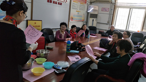 梁南社区烘焙小组自开展以来获得了社区居民的一致认可。每次上课大家都提前来到活动室,一起讨论自己在家里又给家人做了什么甜点,互相切磋交谈,气氛很是活跃。上课的时候,大家更是积极性十足,老师在前面耐心细致的讲解每一个步骤,大家都凑到老师身边仔细观看学习,不时的问一句,这个糖要放多少啊,那个黄油必须得融化了才可以吗等,遇到复杂的制作过程都拿手机拍照或者录像,学习劲头十足!课程结束后大家一起品尝甜点,其乐融融。