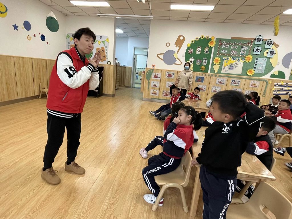 随后,社工来到大四班,为大四班的师生详细讲解一些日常生活中常见的危险场景,并教授孩子们当火情来临之际如何合理求助。考虑到当前孩子们仍处于前运算阶段,因此社工以“过家家”的方式模拟火情来临时孩子们报警的场景。社工邀请小朋友们与自己打电话,模拟拨打119的情景,随后引导小朋友讲述自己的位置以及火情状况,从而学会在火情来临之际如何快速报警。同时社工也告知孩子们任何时刻都要以生命安全为前提,任何活动的开展都要在保护自身安全的前提下进行。
