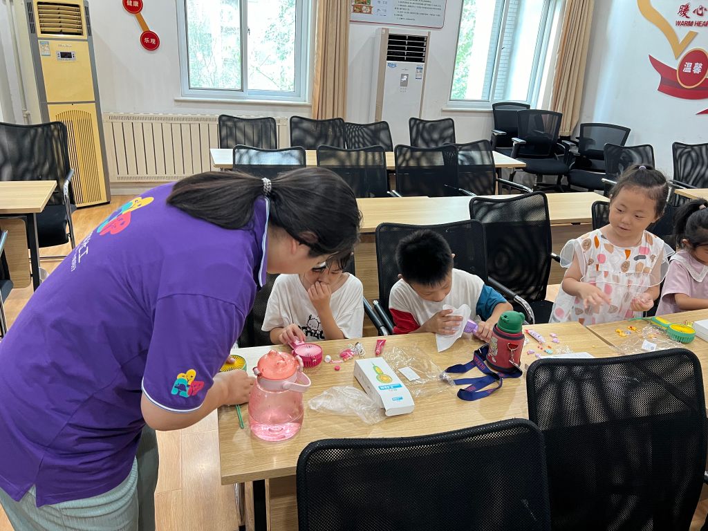 活动开始后,孩子们兴奋地挑选着各自心仪的小风扇及配件。在社工的细心指导下,他们调配出喜爱的色彩奶油胶,并精心设计风扇的外观造型,巧妙地贴上可爱的卡通装饰品。制作过程中,孩子们耐心等待奶油胶逐渐干燥,同时积极交流着各自的设计思路与制作心得,气氛温馨而活跃。当奶油胶完全干燥,制作完成的那一刻,孩子们满怀成就感地拿起自己亲手制作的风扇,拍照留念,共同庆祝这一美好时刻。这不仅是一款风扇,更是孩子们夏日里的一份清凉记忆,见证了他们的创意与努力。