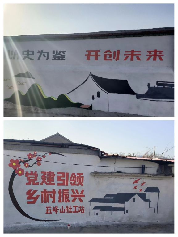 为使墙绘活动顺利开展,社工前期邀请村民代表、村委、街道领导、学校专业老师等多方齐聚,大家各抒己见,协商墙绘主题,最终确定以“传统文化和党建引领”为主题。用画笔和颜料,将鲜艳的色彩层层叠叠,以群众喜闻乐见的方式,创作出一幅富有生机活力的墙绘作品。“小”墙绘促进人居环境“大”提升,成为美丽乡村建设中一道靓丽的风景线。让原本呆板单调的墙面变成会“说话”的宣传员,用画笔传递乡村好声音,用颜料传播社会正能量。