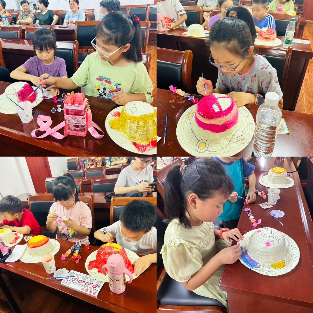 炎炎夏日紫外线的暴晒会给我们身体带来一些伤害,一顶草帽便可以成为守护我们的“安全小卫士”。“帽”美如花之草帽DIY,不仅能让社区孩子们在炎热的天气中感受一丝清凉,也能够培养他们的动手能力和创造力,更重要的是激发出他们的环保意识,培养出好的优良习惯。一笔一画、一色一调,充分发挥自己的想象力,描绘出专属于自己的童年色彩。草帽DIY活动不只是让大家收获一顶美帽,而是可以通过活动来激发儿童们独立自主与热爱生活的观念,引导着他们如何在炎热的夏季保持清凉,提高自我保护意识。