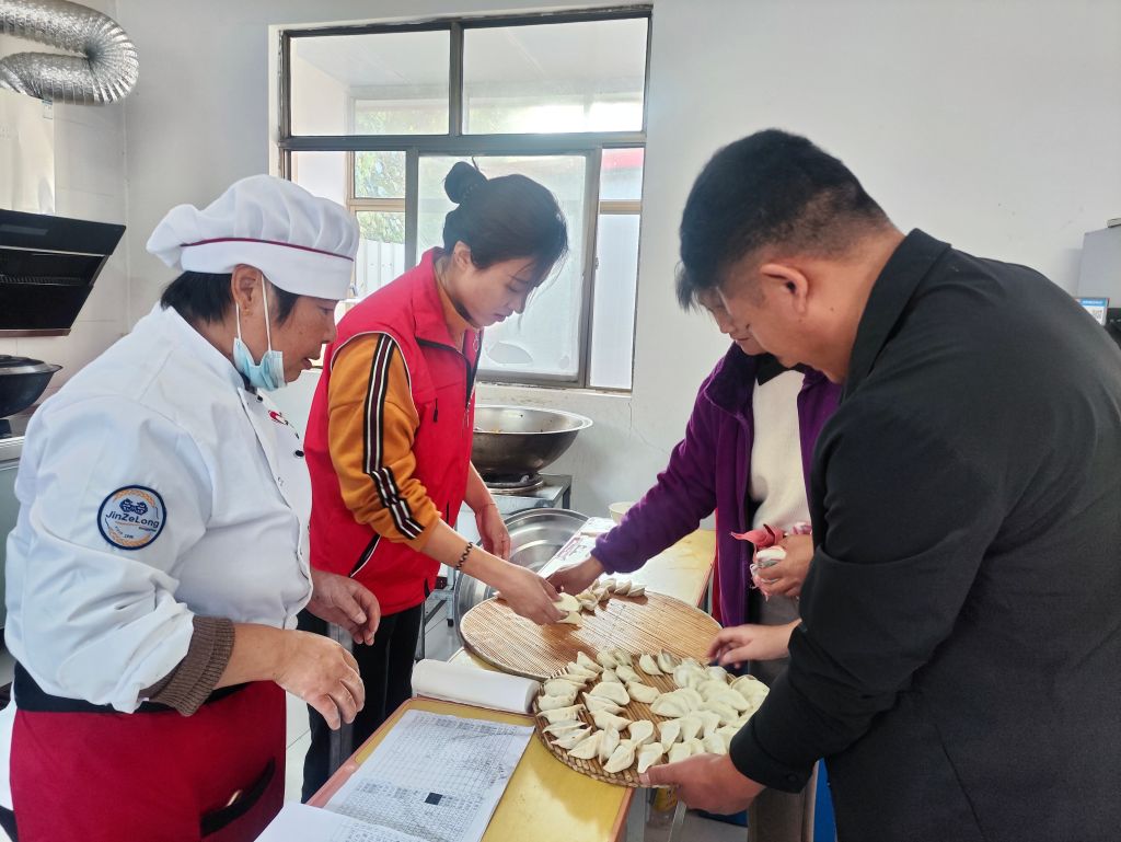 在幸福食堂后厨,村居工作人员、社工撸起衣袖,忙得热火朝天。切菜、拌馅儿、擀皮儿、包饺子,分工有序,大家纷纷拿出“看家”本领,忙的不亦乐乎。敲门声响起,门外传来老人们高兴的声音:“来啰,我们来啰!”知道社工今天要来看望,他们早早就来到幸福食堂。社工详询老人身体情况,了解老人的生活物资储备、居家安全、日常出行情况,并提前送上节日的美好祝愿。独居老人刘奶奶说道:“现在我们老年人太幸福了,每天都能免费吃到可口的饭菜,今天又有炖鸡又有水饺,真是太好了”。