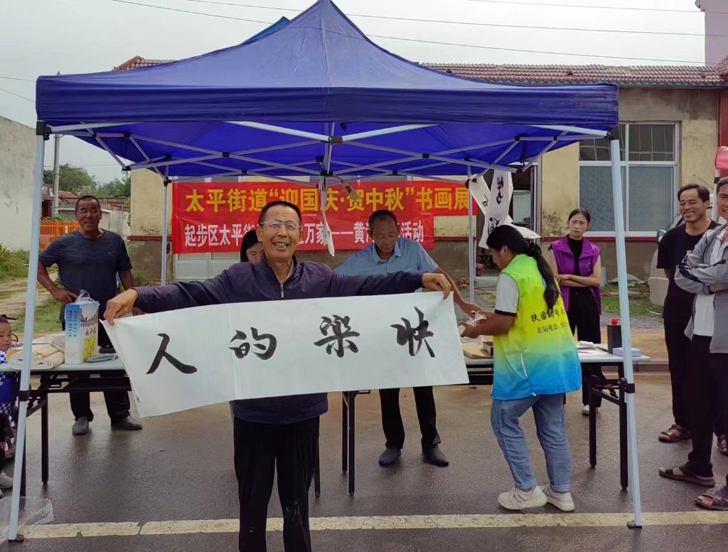 活动最后,民间书法家为现场群众赠送书法作品,将美好的寄托赠与他人,群众捧着“新出炉”的书画作品心里乐开了花。参加活动的李叔叔说:“书法不仅是中国传统文化的瑰宝,还能修身养性,陶冶情操,我以后也要学习书法、练习书法。”