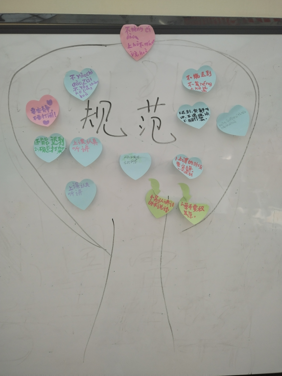 随后,“谁是小组长”活动内容,让小组成员之间有了更进一步的认识。社工引导小朋友彼此推荐自己心中的小组长,小朋友在进行投票,票数最高者成为小组长。接下来的“小组规范树”活动,则解释了小组的由来,确定小组契约,确保小组活动的纪律。社工协助小组成员在便利贴上写下小组契约,小朋友共同把手中便利贴到“规范树”上,并进行分享。