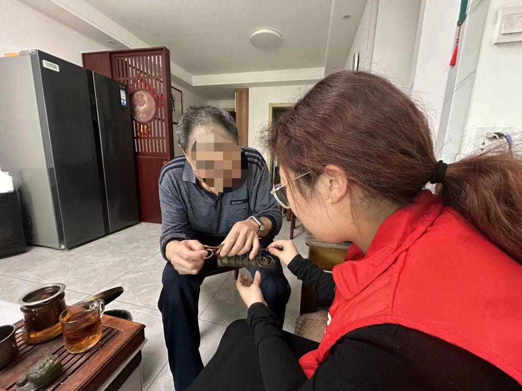 早在今年3月份,董家街道社工站在虞麓花园小区外展宣传中,社工收到来自物业管家吕老师和村民李阿姨的求助。原来是李阿姨的老伴金大爷患有糖尿病,今年年初因治疗不及时从而引发了眼底疾病,两只眼睛几近失明,金大爷退休后就捡起自己年轻的爱好--制作小手工。前几天,金大爷心血来潮摆弄家里的小摆件时,发现自己的眼睛模糊的越来越厉害,甚至不听使唤,此后金大爷像是变了一个人,由于子女异地工作繁忙,也未将此事放在心上,简单的安慰金大爷后也就不了了之了,可是李阿姨却发现金大爷的性格也变得让人捉摸不透,不仅总是身心疲惫,情绪还特别的消极。李阿姨看到社工在街头宣传讲解社工开展的一系列服务,在认真听讲完后,社工将李阿姨的需求记录在册后,社工与李阿姨和金大爷协商一致,制定了定期上门探访及开展个案工作的服务计划。
