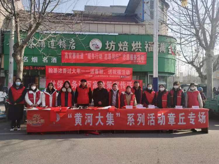 为弘扬“奉献、友爱、互助、进步”的志愿精神,营造欢乐喜庆、祥和文明的节日氛围,1月26日,高官寨街道社工站联合街道残联及新文明实践志愿者在高官寨大集上共同开展“暖冬关爱 志愿同行”主题服务活动。现场邀请章丘区书法协会高官寨分会会长刘祖新,高官寨书法爱好者孟庆常开展写福字送春联活动,给广大辖区群众送去浓浓年味和新春祝福。