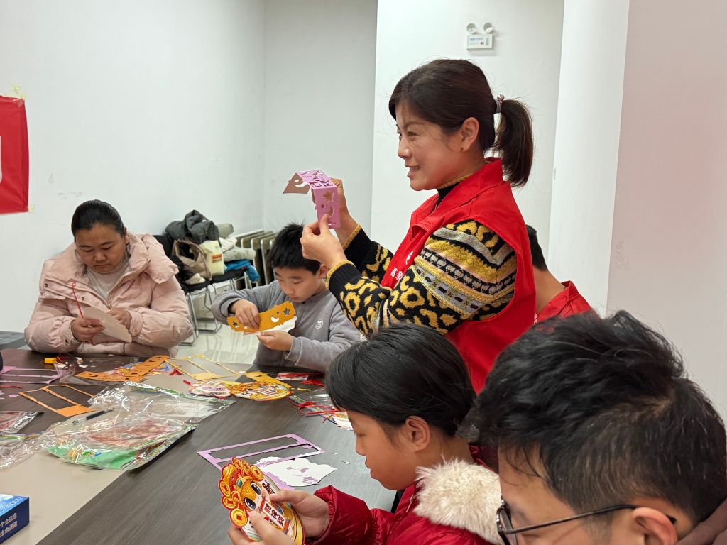 在手工制作环节,社工们变身耐心的指导老师,手把手教孩子们制作灯笼。面对初次接触手工制作的孩子,社工们不厌其烦地解答疑问,帮助他们克服困难。从裁剪纸张到组装骨架,每一个步骤都有社工细致的指导,孩子们在社工的鼓励下,充分发挥自己的创造力,为灯笼添上了独特的色彩