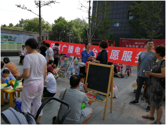 7月31日上午,济南广播电视台志愿服务队进社区活动正式启动。济南广播电视台志愿服务队向社区读书堂捐赠图书百余册,活动过程中,电视台志愿服务队成员为前来参加活动的儿童讲解图书中的知识并引导孩子们针对书中的道理进行举一反三;随后济南广播电视台党委韩书记表示,将于8月1日至8月14日,每天上午安排两名志愿者轮流进社区,共同促进社区读书堂的开展。