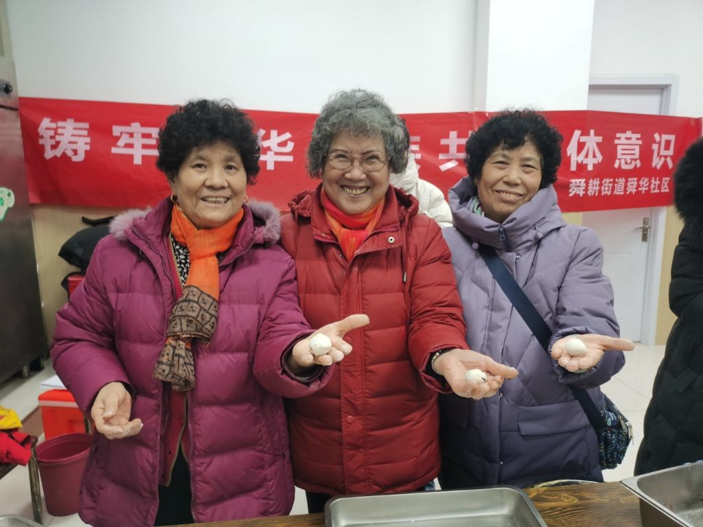 来参加活动的居民陆续到达,大家热情地打着招呼,说着喜庆的话儿,纷纷加入到包汤圆的队伍中,揉面团、放馅料、搓元宵、滚一滚,老老小小齐上阵,一盘一盘洁白圆胖的元宵呈现在大家眼前,大家聊着家常,交流着包元宵的心得,欢声笑语缭绕在活动现场。