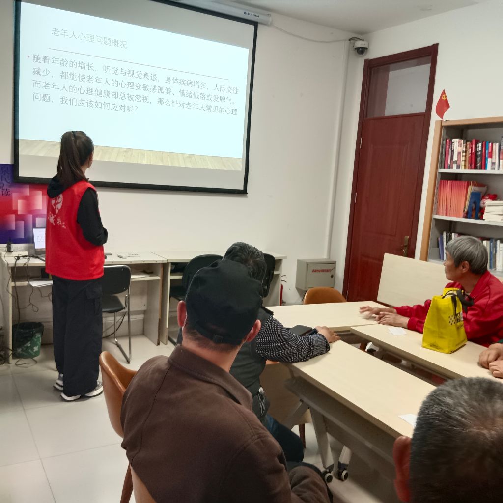 一直以来,老年人的心理健康问题总是被忽视,社工从老年人的生活规律、环境等方面的改变,深入浅出的分析了老年人出现心理问题的原因,并结合实际情况就老年人如何保持心理健康做了通俗易懂的讲解。老年人纷纷表示这种讲解方式很容易被大家理解。在知识科普环节,社工讲述了五种解决心理问题的方法,例如保持社会交往、增强体育锻炼等。