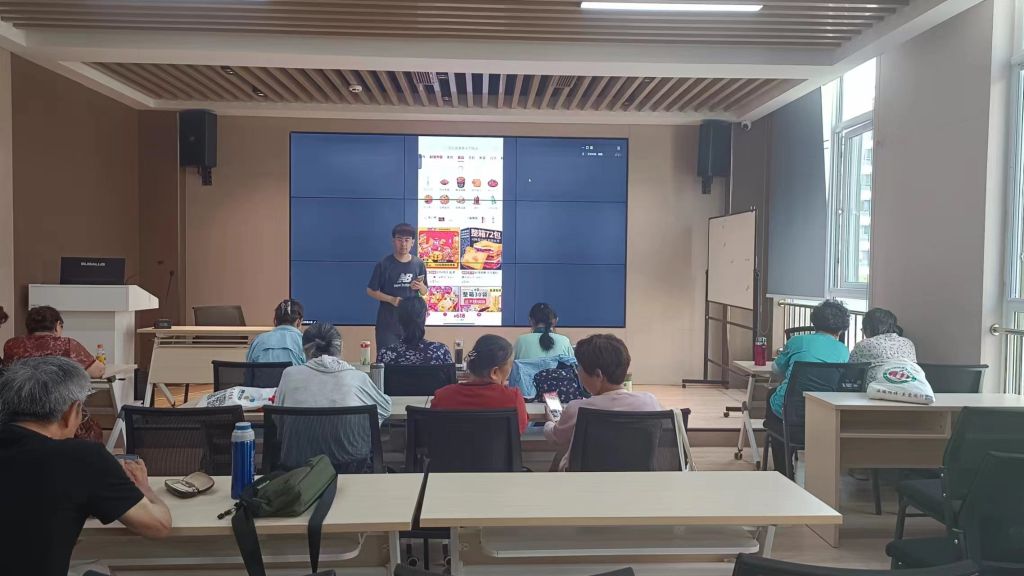 在了解基本的原理之后,志愿者开始为老人们仔细讲解网上购物的详细流程,像如何选择自己心仪的商品、填写收货地址以及付款购买。为了方便老人们理解学习,志愿者通过投屏的方式让老人们能更加直观的学习到具体流程,志愿者做一步,讲台下的老人们做一步,这样的教学方法能充分顾及每一位组员的接受与学习能力,帮助他们更好的理解与掌握志愿者所教授的知识与操作。在志愿者的带领下,老人们成功体验了一遍网上购物的流程。老人们普遍认为网上购物十分新奇,纷纷跃跃欲试。在尝试的过程中,不乏有老人遇到一些操作上的困难,如不知道如何搜索商品名称、收货地址填写错误等等。志愿者与社工站的实习生耐心细致的为有困难的老人们进行讲解,帮助他们自行解决难题。网络购物有利有弊,在教授老人们通过网上购物方便日常生活的同时,志愿者也不忘向老人们普及网络诈骗的知识,小心网络上的“甜言蜜语”,仔细分辨理财骗局,对于网络诈骗一定要不听、不信、不理睬。