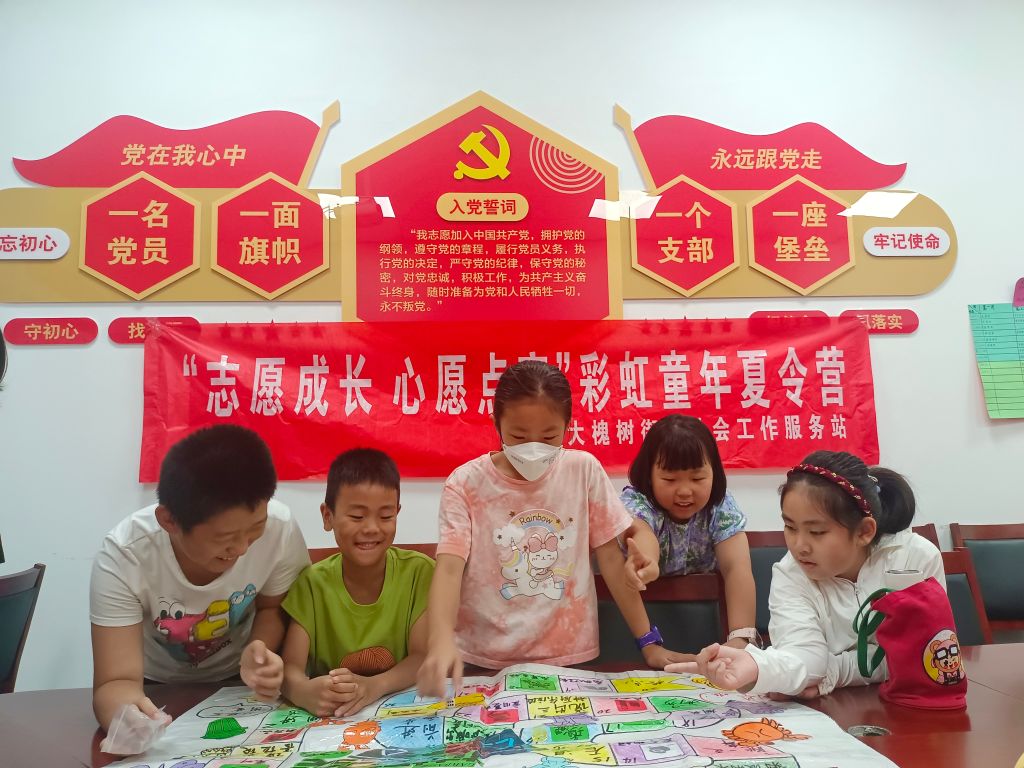 内化于心。活动中,营员们你搭手我帮忙,通力合作,共同完成了“圈圈圆圆”的开场游戏,在社工引导下,大家认识到了游戏中突显出的“奉献 友爱 互助 进步”的志愿服务精神;接着,在“环保版大富翁”中,大家纷纷化身商贾,以旅途中的种种垃圾分类小知识为“金币”,赚了个盆满钵满,塞满了知识行囊。