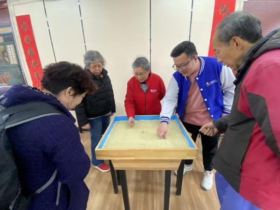 “你们小的时候弹玻璃球是怎么玩的,”问题的抛出扑面而来的是来自不同年代不同地域的规则与玩法,甚至于弹球与击球的方式也不尽相同,对于社工复刻的弹玻璃球的道具设计社区居民在体验玩乐的同时给予真诚的用户感受反馈,“底盘铺置的沙土质地太软”,“球洞的位置设置不合理”,“比赛规则过于复杂”,除此之外,社区居民先后体验了“弹指网球”与“瓶盖冰壶”两个比赛项目设计并对两个服务项目表达了自身体验后的感受与建议,来自于社区居民体验后的真知灼见将会转换为重要的元素出现在服务设计之中。