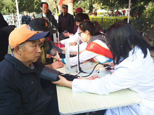 山东医专的志愿者带着血压仪等相关仪器现场为广场上的老年人测量血压,讲解血压的相关健康知识。活动中更请来山东医专的中医教授为大家解答养生保健的相关知识,很多老年人根据自己的身体状况向教授进行咨询,教授都耐心的进行一一解答。老年人在听讲解的过程中还认真地做了笔记,纷纷称赞这样的活动非常好,希望下次教授还来进行讲解。