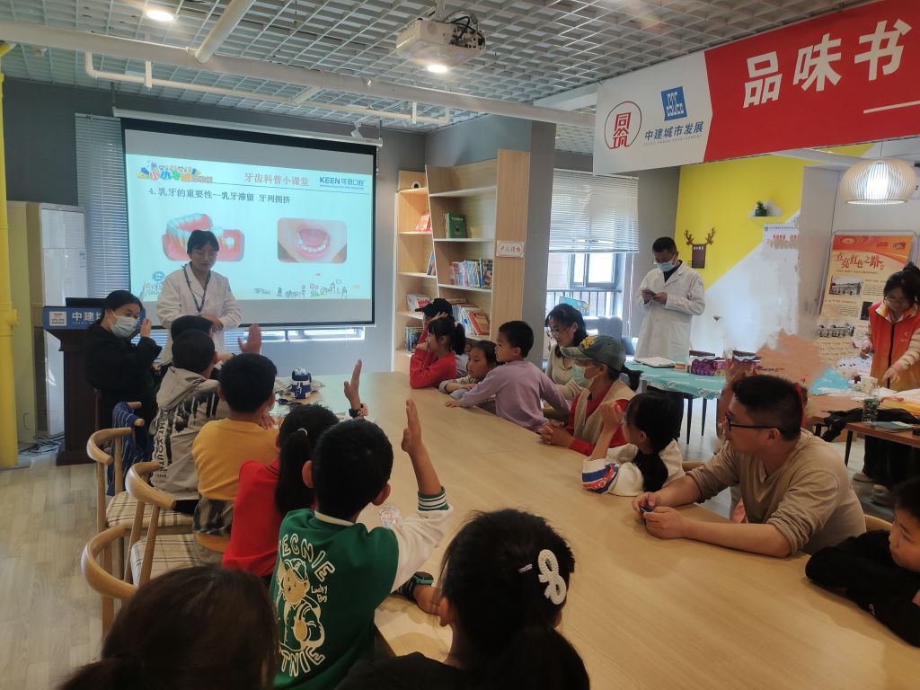 正式上岗前,为让孩子们深刻感受口腔医生的神圣,激发孩子们爱牙护牙意识,济南可恩口腔医院牙病防控中心主任丁琳为“小医生”们带来了一堂别开生面的牙科知识大讲堂,形象生动地带领小朋友们进一步了解牙齿,保护牙齿及如何有效的预防牙齿疾病等。孩子们认真听讲,并踊跃回答问题,现场气氛好不热闹。