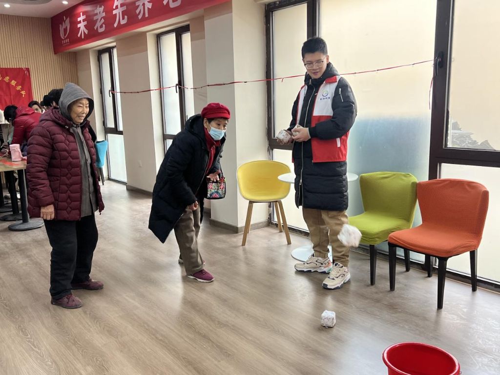 另一边的游戏体验区同样热闹非凡。精心设置的“投福包、快乐乒乓”游戏吸引了众多居民参与,现场欢笑声不断。活动还设置了奖励机制,让居民们在游戏中收获快乐与惊喜,社工在旁贴心服务,确保大家都能尽情享受游戏的乐趣。