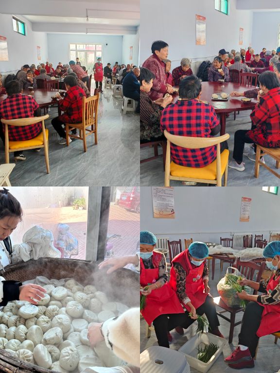 10 月 20 日,一场温馨的活动悄然拉开帷幕。前期,社工提前与社工总站以及农村幸福院负责人沟通协调活动所需物资,并与社会组织志愿者对接村内基本情况。得益于这些充分且细致的准备工作,当日上午,区民政局志愿服务队的志愿者们在高局长的带领下满怀热情地抵达街道内的南王村,迅速投入志愿服务。他们分工明确、配合默契,有的精心挑选新鲜食材,有的熟练地切菜、调馅、包蒸包,还有的仔细清洗炊具。经过一番忙碌,一笼笼热气腾腾、香气扑鼻的大蒸包新鲜出炉。在此过程中,社工们同样各司其职。有的社工与老人们亲切交流,深入了解他们对于饮食的喜好和特殊需求,以便为后续服务提供更具针对性的改进方案;有的社工则认真记录整个活动的流程细节,为后续工作积累宝贵的经验和素材。在此期间,高局长和村里的老年志愿者亲切地唠家常,倾听老人们讲述村里的变迁和生活中的点点滴滴,关切地询问他们的身体状况和日常需求。老人们脸上绽放着幸福的笑容,现场气氛温馨而融洽。
